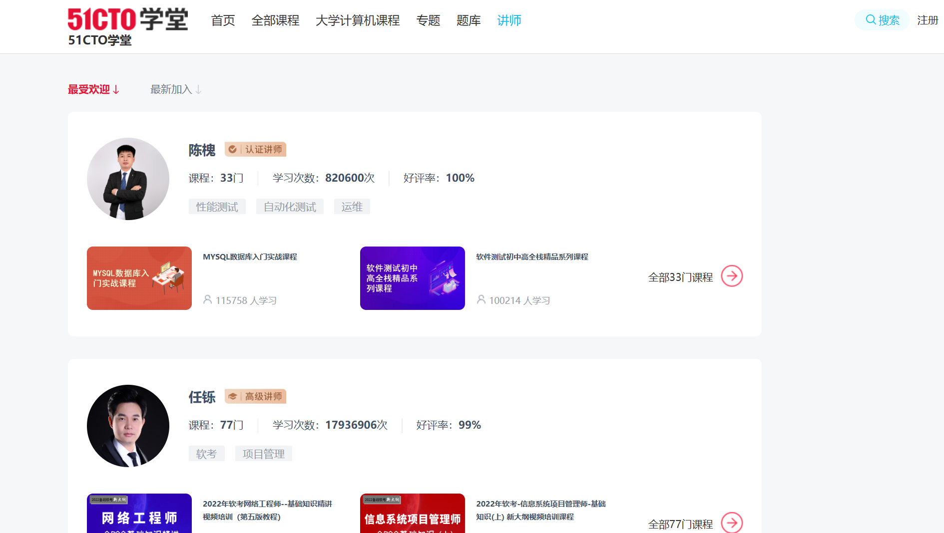 最新热门讲师排行榜